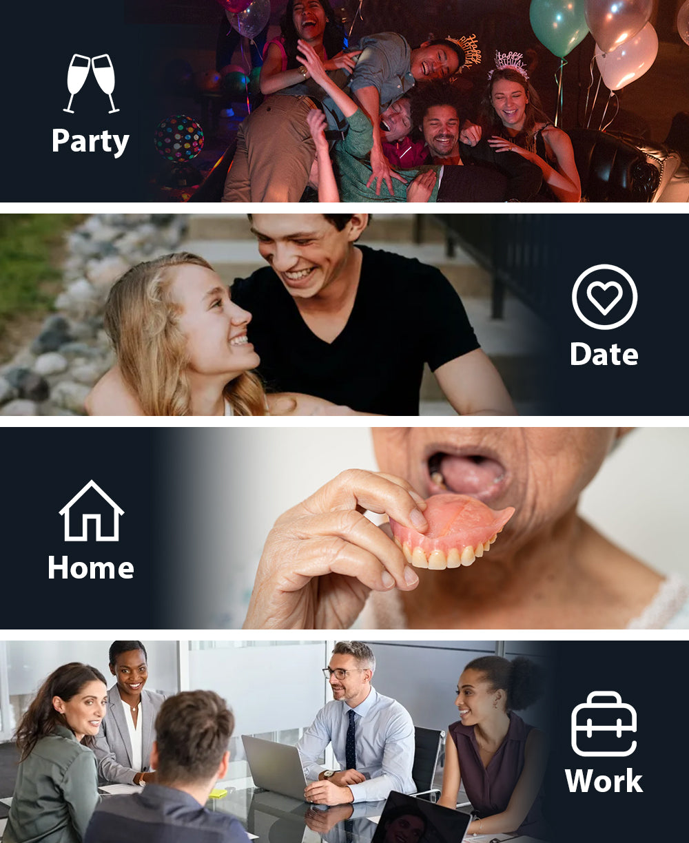 No dentist required. No sticky adhesives. No uncomfortable slipping.