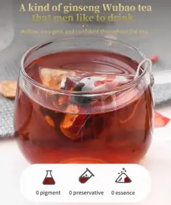 Our tea includes ginseng, goji berries, red dates, mulberry, maca, yam, and huang jing—carefully dried and blended without any artificial ingredients or additives. Each ingredient was chosen for its health benefits, helping you feel your best from the inside out.